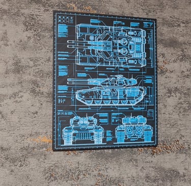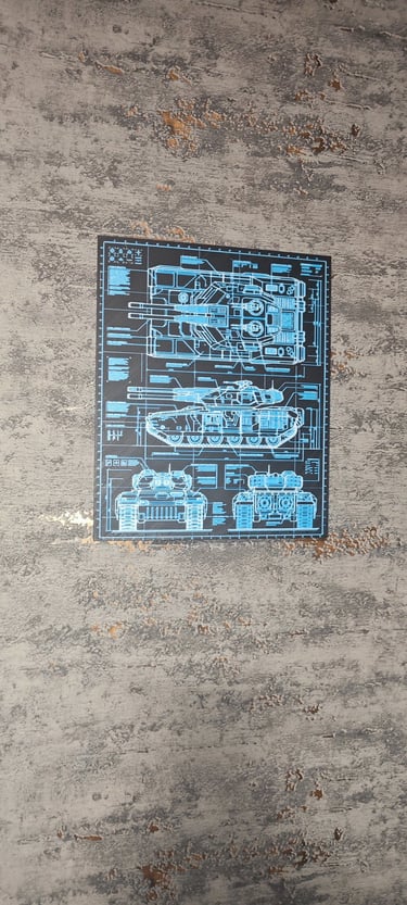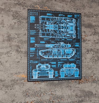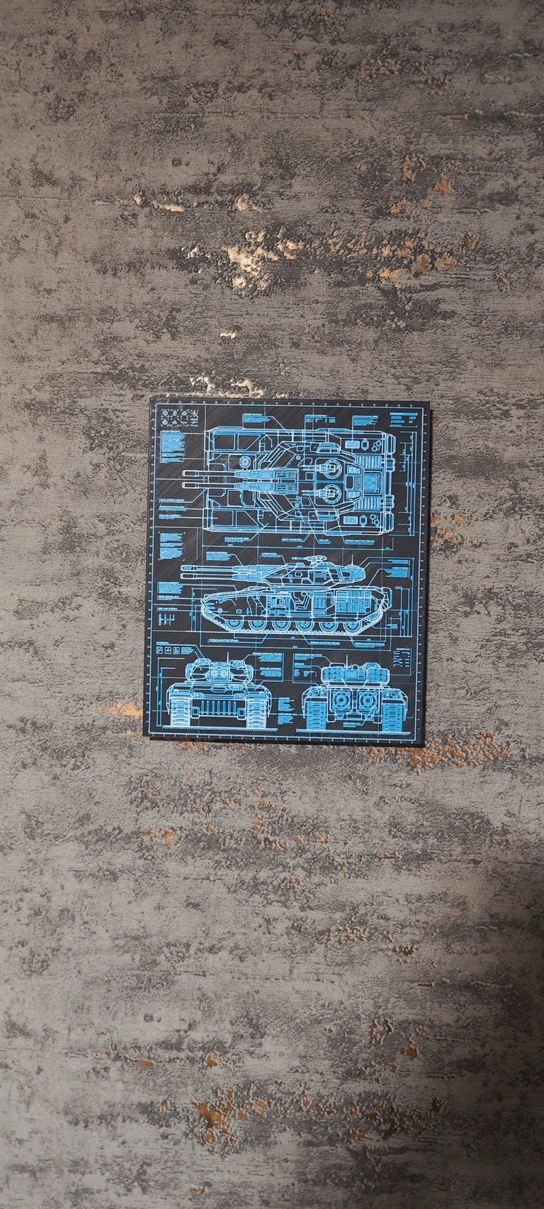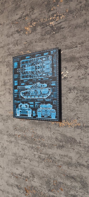 Ein 3D-Druck-Kunstwerk mit dunklem Blueprint -Design.